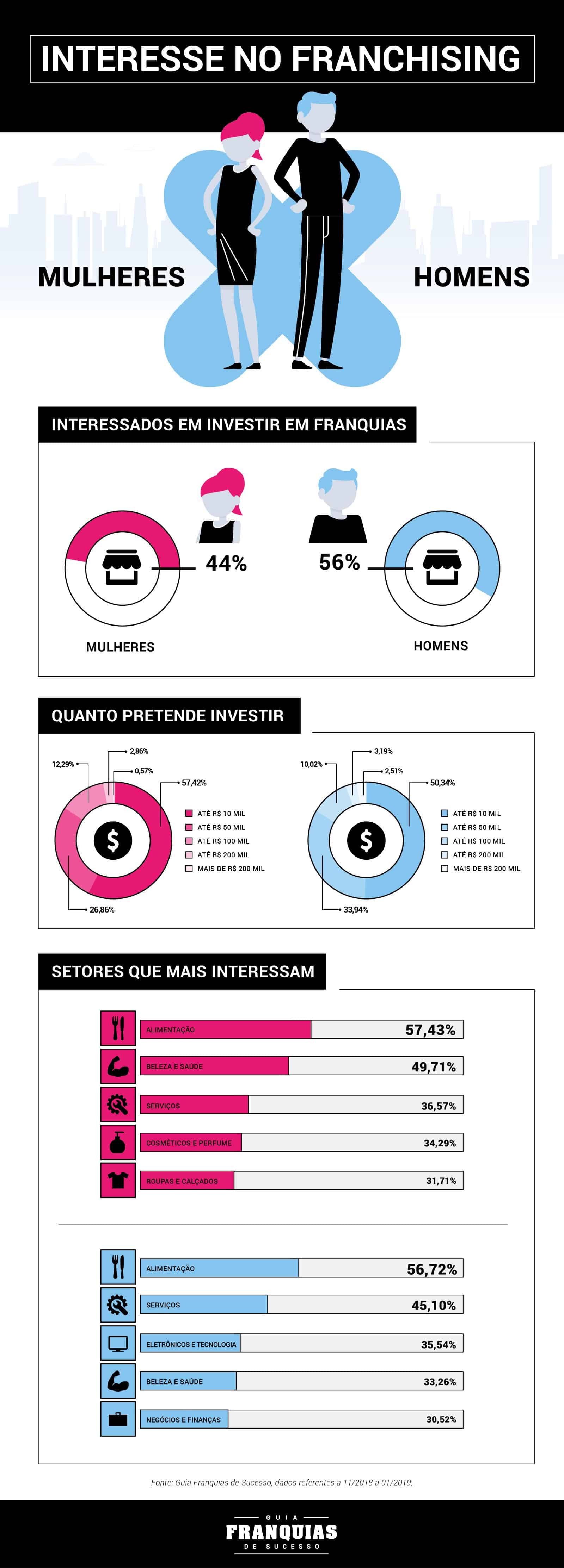 entre os dois públicos. Entre as mulheres, o percentual que busca franquias de